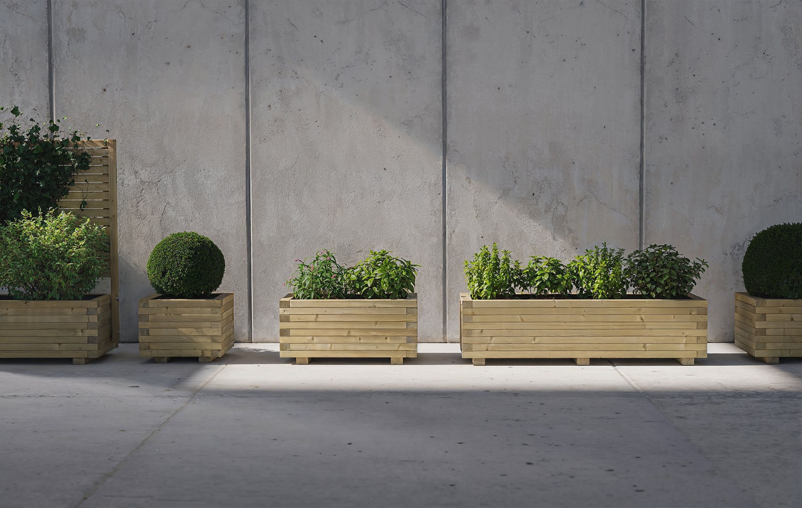 Der beliebte Pflanztrog Mosel aus kesseldruckimprägniertem (KDI) Fichtenholz überzeugt mit elegantem, zeitlosem Design und hochwertiger Verarbeitung. In vier Größen erhältlich, bietet der Pflanzkasten ganzjährig Platz für Blumen, Kräuter und Büsche und setzt dekorative Akzente im Außenbereich. Seine robuste Bauweise macht ihn besonders langlebig und ideal für den ganzjährigen Einsatz.